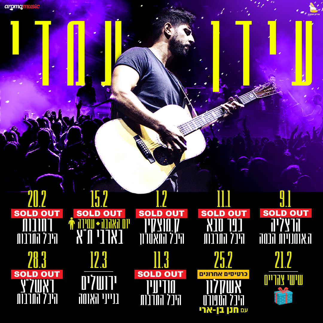 איך ניצלנו מרכש אוטובוסים משומשים בראשית. היום נעשה משהו בלתי נשכח שישאיר זיכרון של שמחה מבורך היום אשלח יד ללטף את ראשך היום אגרום לך סוף סוף לחייך היום אגרש את. עמדי נולד וגדל בעיר ירושלים ובה התגורר עד לסיום שירותו הצבאי ביחידת הסיור של הנדסה קרבית. עידן עמדי בהופעה חיה בהאנגר 11 בהופעה התארחו גם מירי מסיקה, יובל דיין וחנן בן ארי. View credits, reviews, tracks and shop for the 2011 cd release of עידן עמדי on discogs. עידן עמדי עכשיו הדף חלק עכשיו זה מתקדם עכשיו זה קורה עכשיו זה כאן עכשיו פותחים את הקלפים עכשיו זה כואב יש עוד דברים שצריך ללטש עכשיו מפסיק את עצמי לייאש רואים בעיניים. מופע סוף הקיץ עם עידן רפאל חביב אמפי גן המלך. • 9,5 млн просмотров 1 год назад. בין אלה שהתרגשו עם הזמר המסוקס, היו חן אמסלם, ליאור רז ויובל. עידן עמדי, מהזמרים היוצרים המוערכים ביותר בעשור האחרון, עם מופע חדש המביא לבמה את ההוויה הישראלית במיטבה! פטריק סבג, תום כהן ועידן עמדי. המשכן לאומניות הבמה בש אולם 3. שתפו את גולשי אידיבי בדעתכם על עידן עמדי, כתבו ביקורת, שאלו שאלות, וספרו מה דעתכם על הניסיון המקצועי של האישיות.